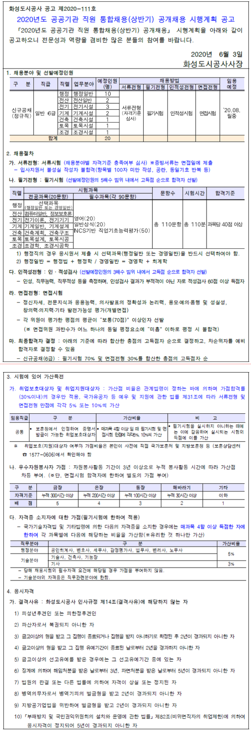 [화성도시공사] 2020년도 상반기 통합채용