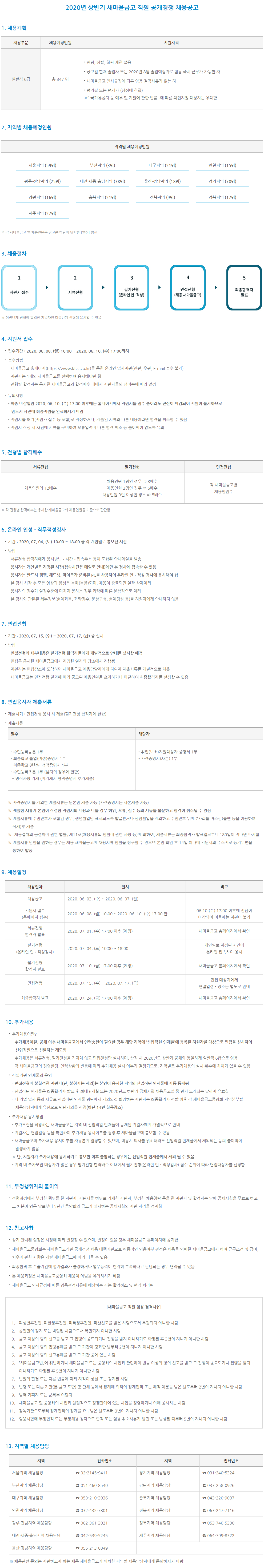 [새마을금고중앙회] 2020년 상반기 새마을금고 직원 공개경쟁 채용공고