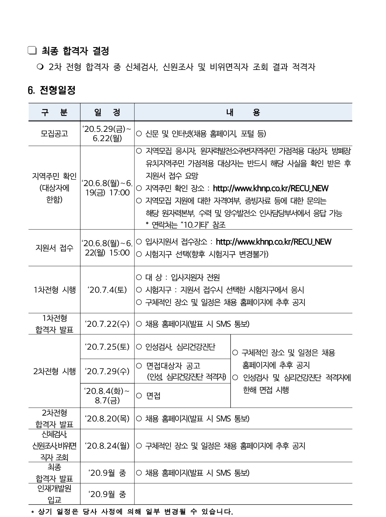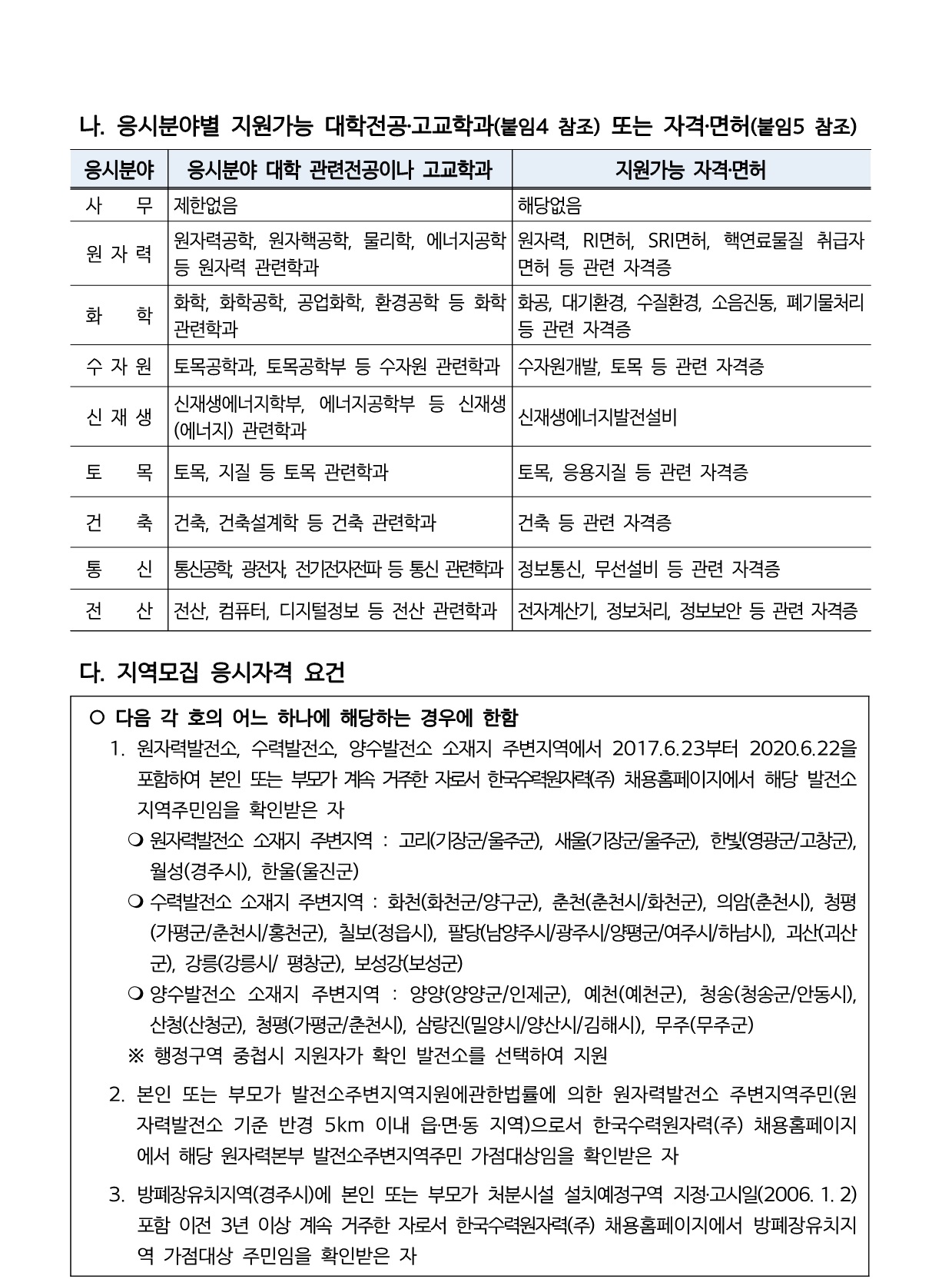 [한국수력원자력] 2020년 제1차 대졸수준 신입사원 선발