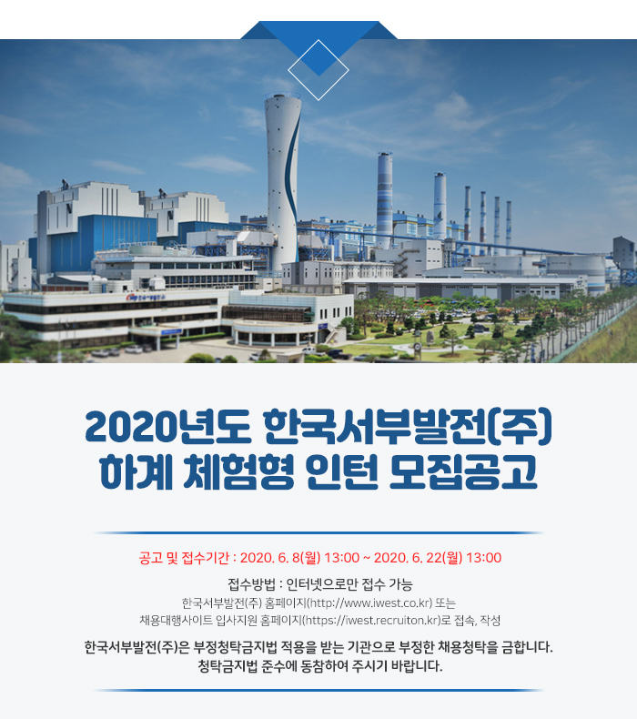 [한국서부발전] 2020년도 하계 체험형 인턴 모집공고