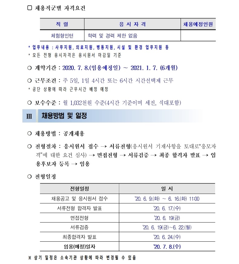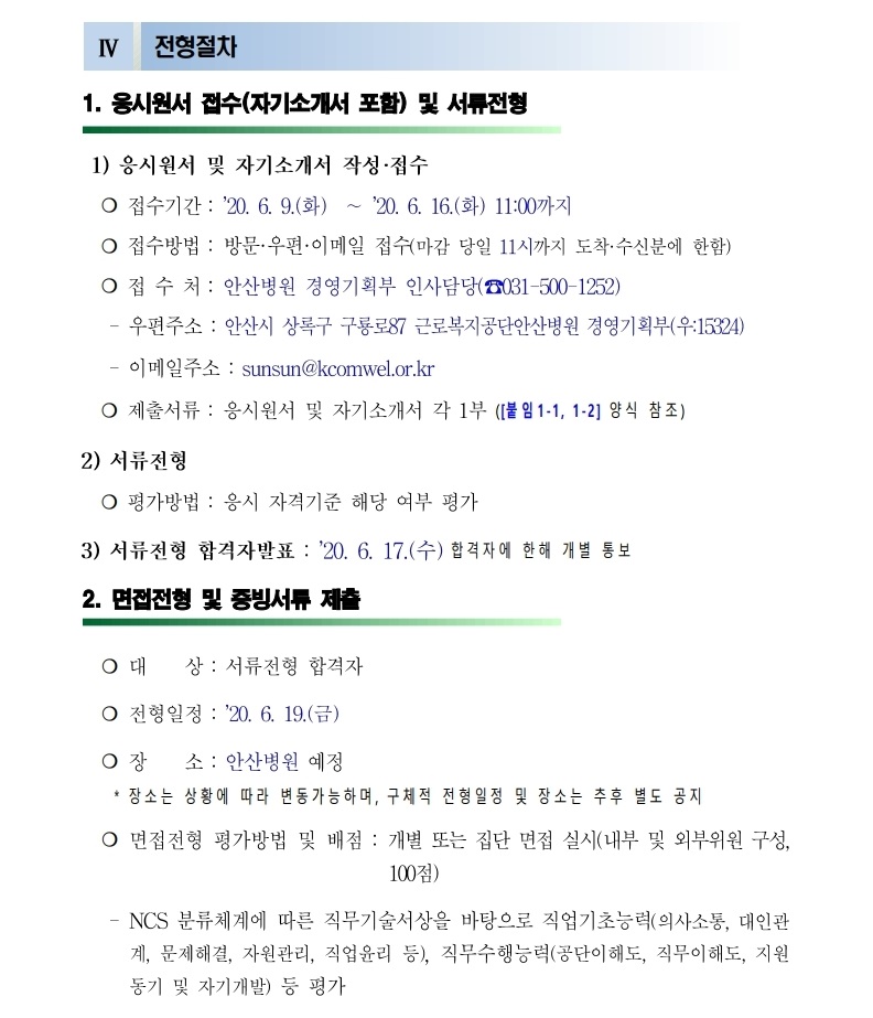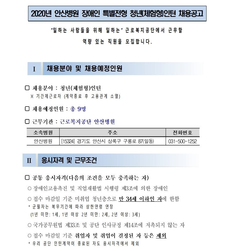[근로복지공단 안산병원] 2020년 청년(체험형)인턴 장애인특별전형 신규채용 공고