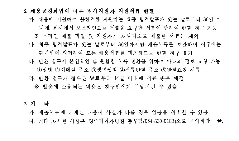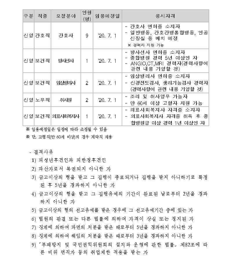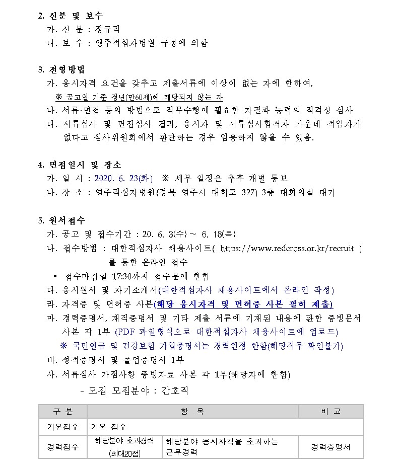 [영주적십자병원] 간호사,방사선사,임상병리사,취사원,의료사회복지사 공개채용 공고