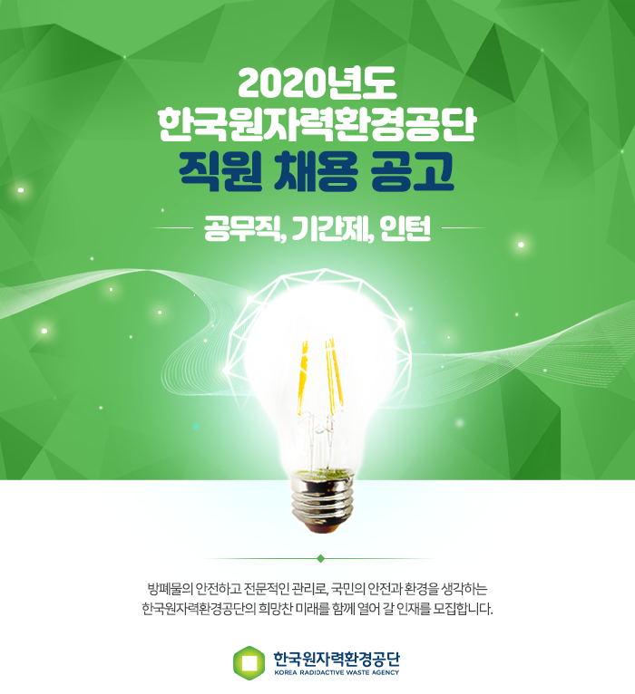 한국원자력환경공단의 희망찬 미래를 함께 열어 갈 인재를 모집합니다.