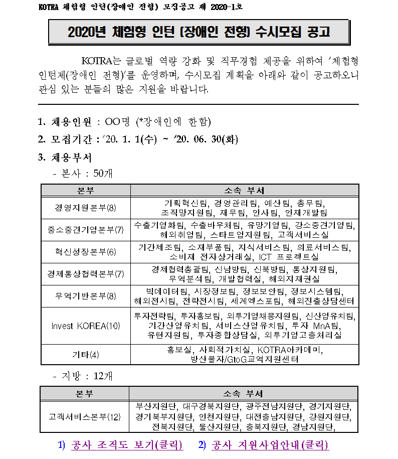 [대한무역투자진흥공사] 2020년 체험형 인턴 (장애인 전형) 수시모집