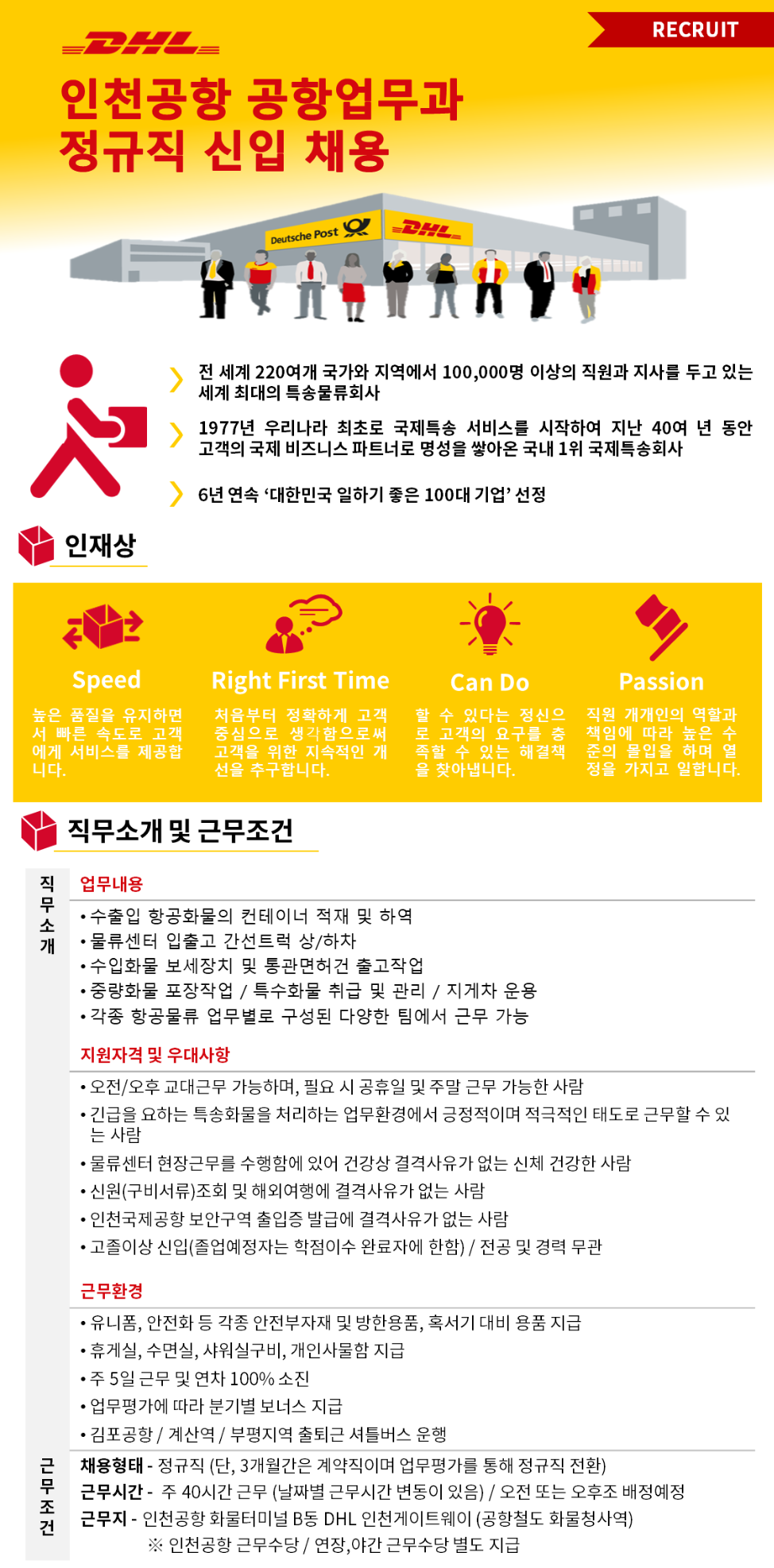 [DHL KOREA] 인천공항 공항업무과 정규직 신입 채용