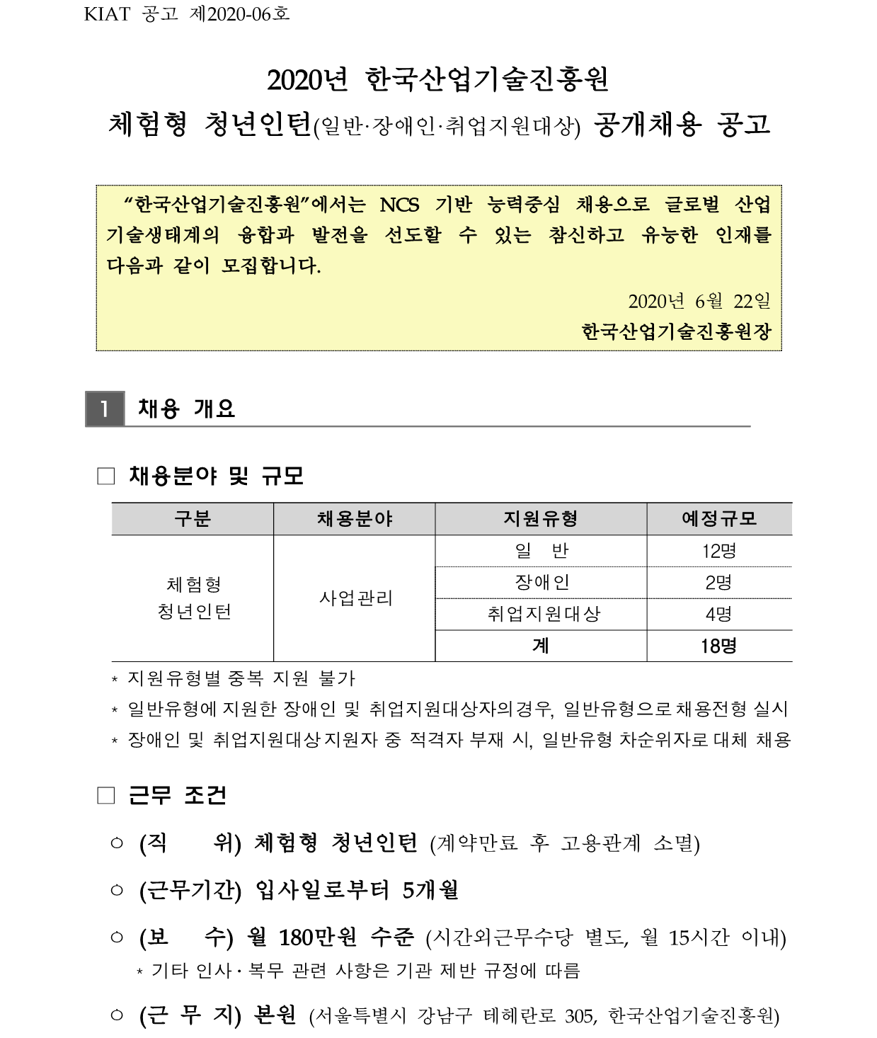 [한국산업기술진흥원] 2020년 체험형 청년인턴(일반·장애인·취업지원대상) 공개채용 공고
