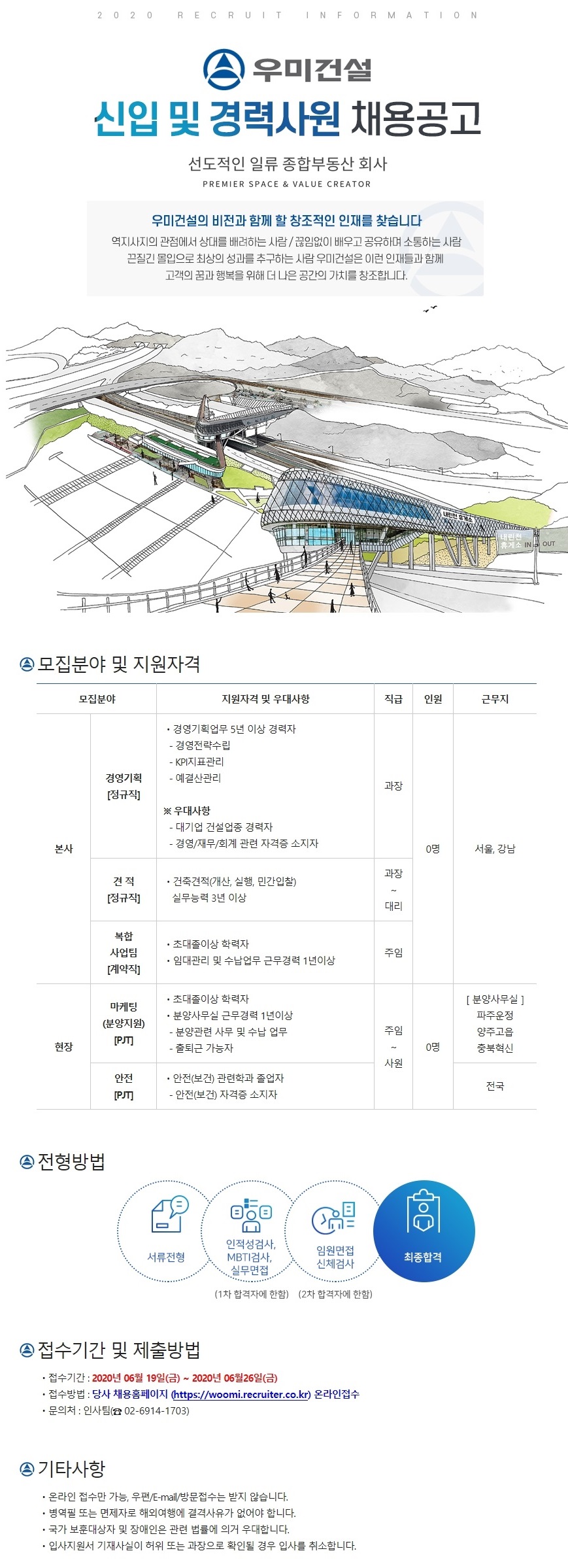 [우미건설] 부문별 경력 및 신입사원 채용 공고 ( 20.06.19 ~ 20.06.26 )