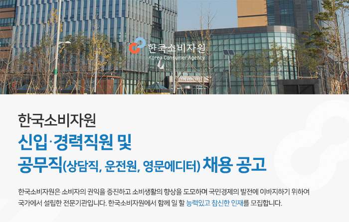 [한국소비자원] 2020년 신입/경력직원 및 공무직(상담직, 운전원, 영문에디터) 채용 공고