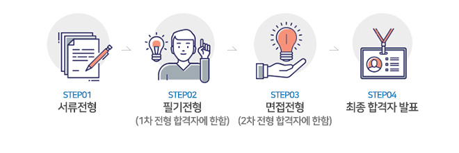 ㅇ 1차 전형 : 서류전형ㅇ 2차 전형 : 필기전형(1차 전형 합격자에 한함)