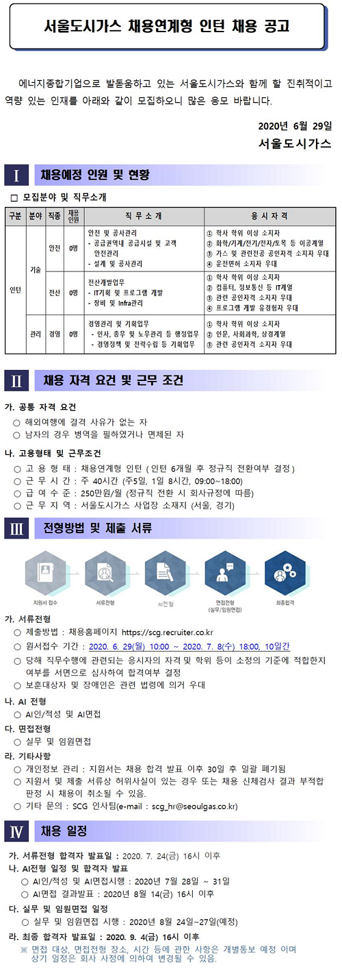[서울도시가스] 2020년 채용연계형 인턴 채용 공고