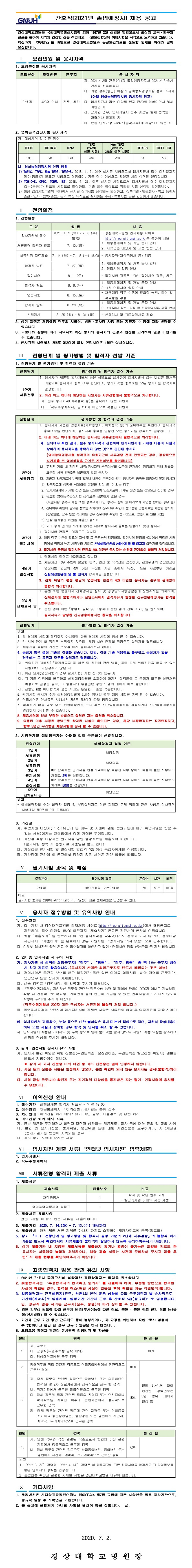 [경상대학교병원] 간호직(2020년 졸업예정자) 채용 공고