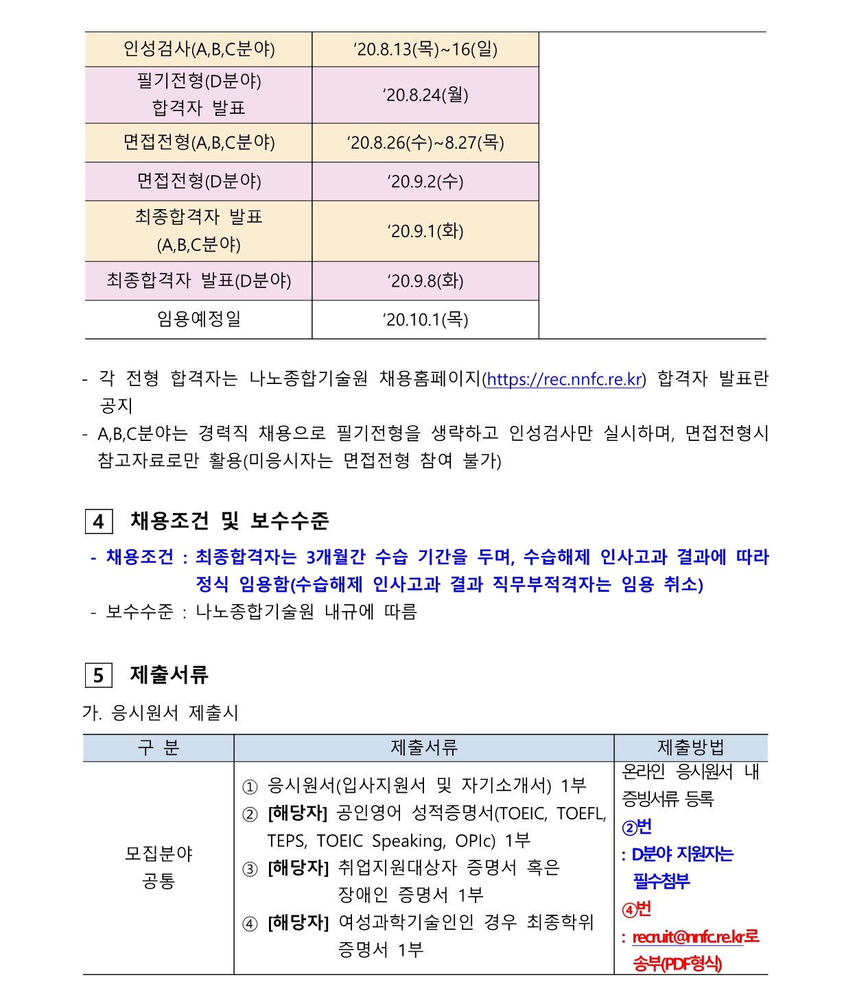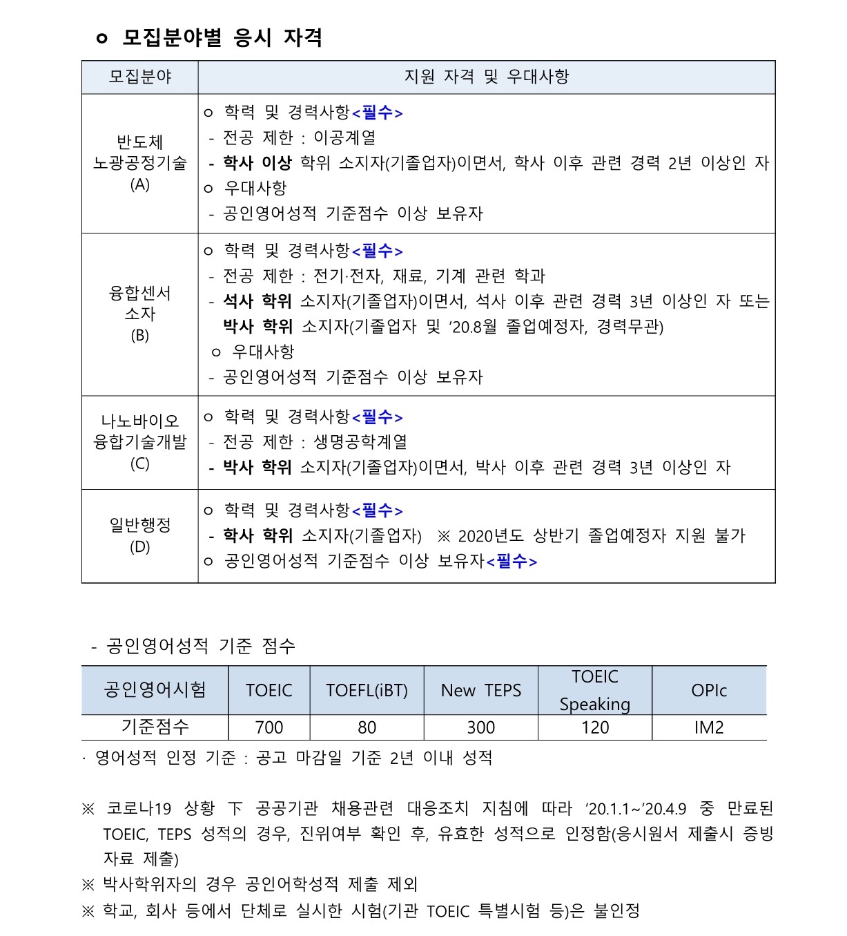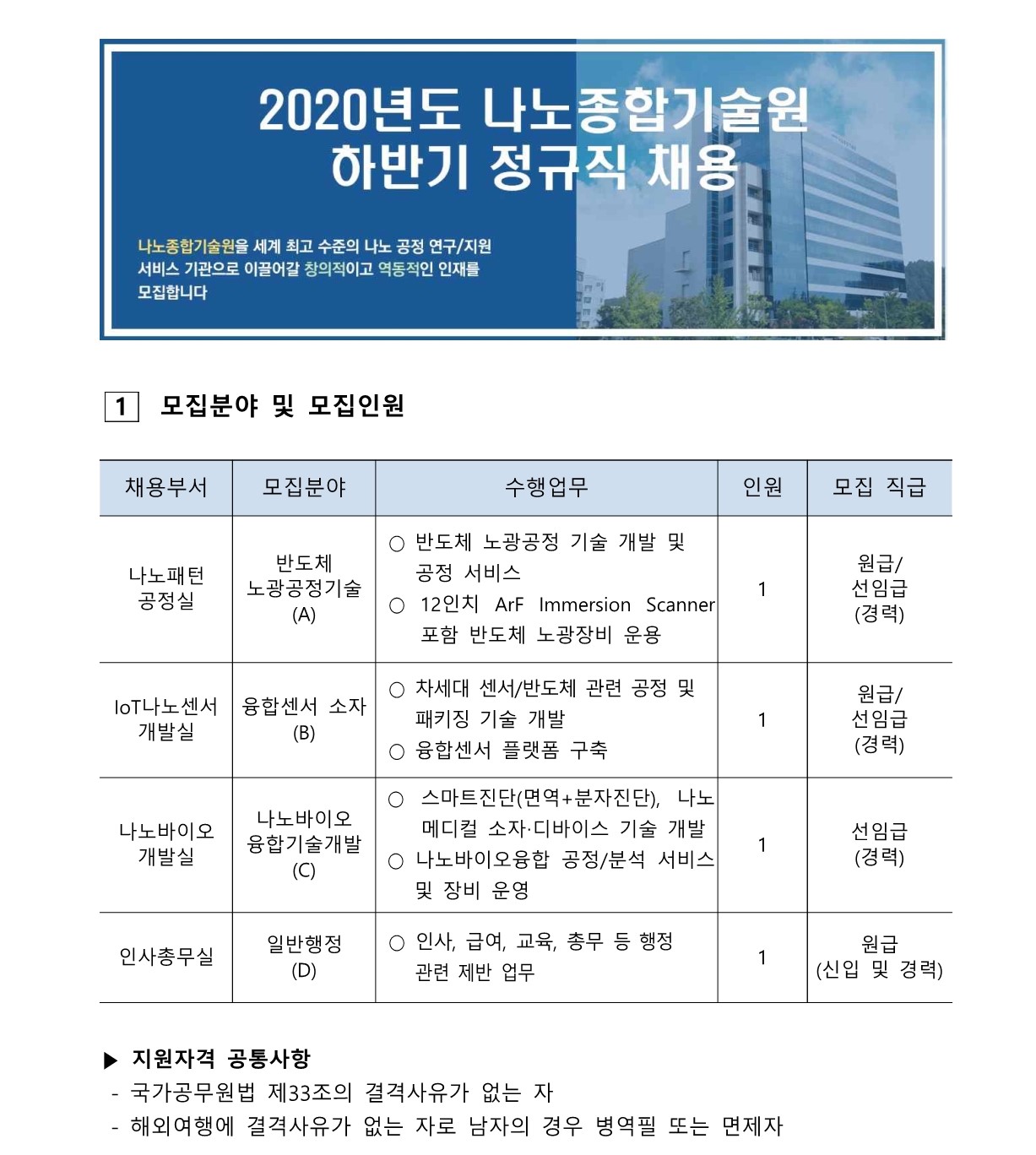 [나노종합기술원] 2020년도 하반기 정규직 채용