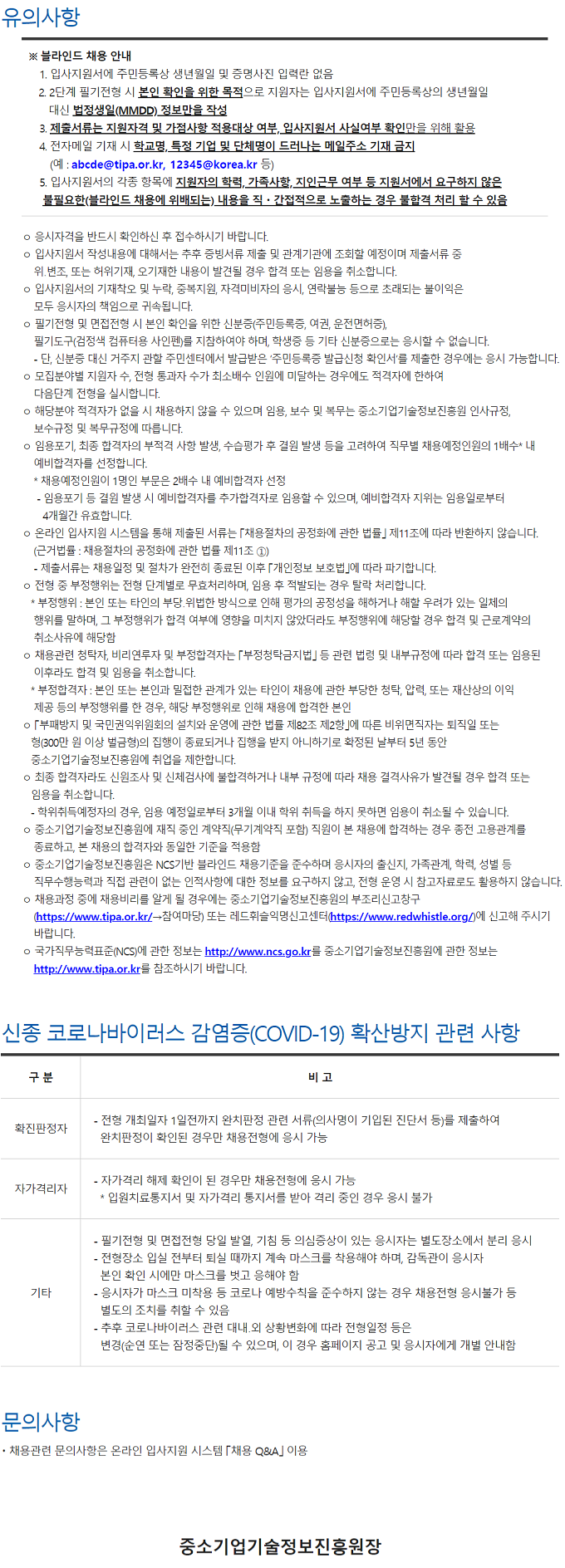 [중소기업기술정보진흥원] 2020년 일반직 및 연구지원직 채용