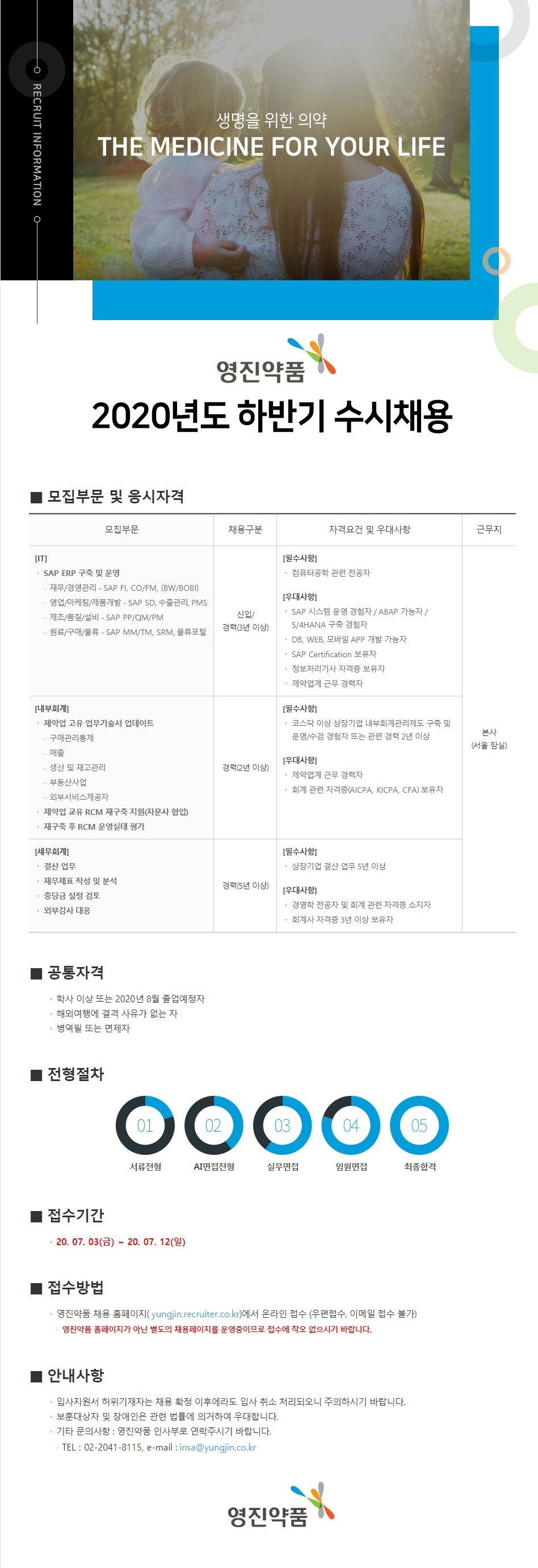 [영진약품] 2020년도 하반기 수시채용