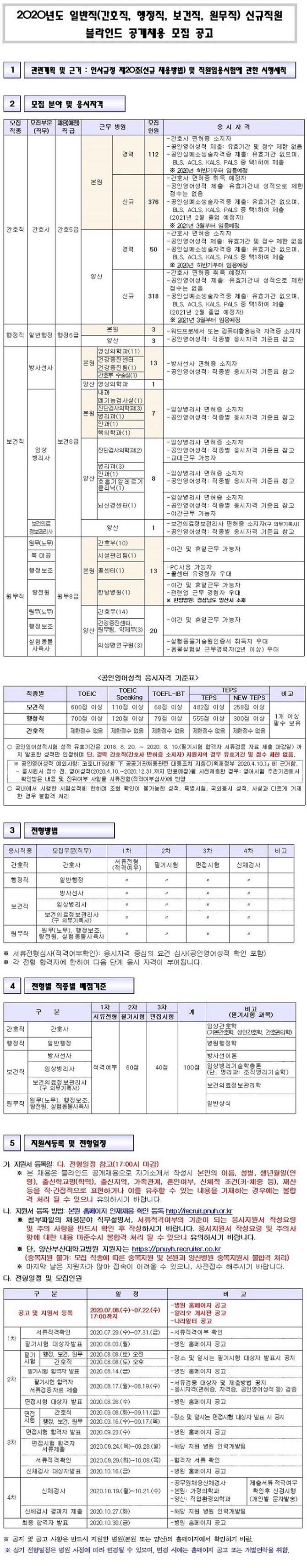[부산대학병원] 2020년도 일반직(간호직, 행정직, 보건직, 원무직) 신규직원 블라인드 공개채용 모집 공고(본원)