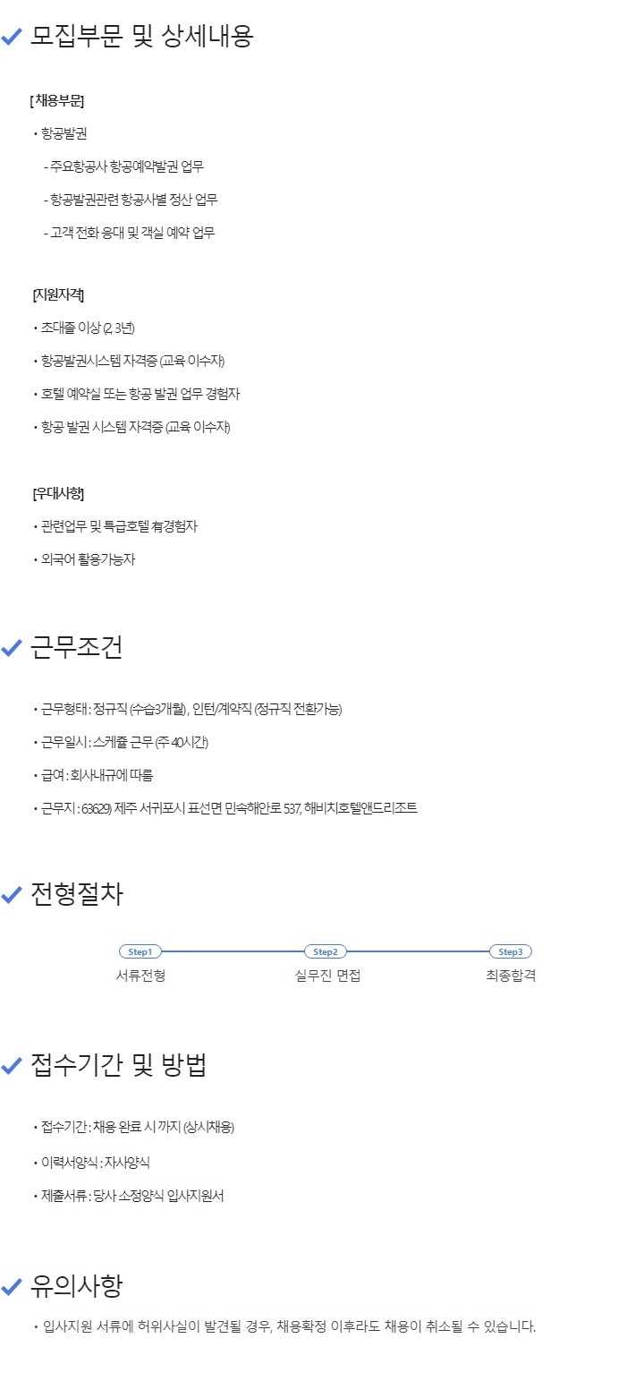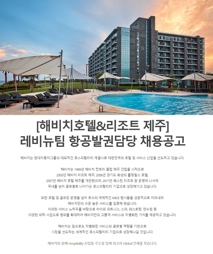 [해비치호텔&리조트 제주] 레비뉴팀 항공발권담당 직원 채용공고
