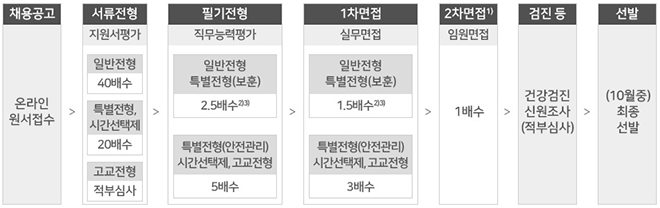2)단, 일반전형(비수도권) 법, 특별전형(보훈) 경제/전산은 필기전형에서 5배수, 1차 면접전형에서 3배수를 선발