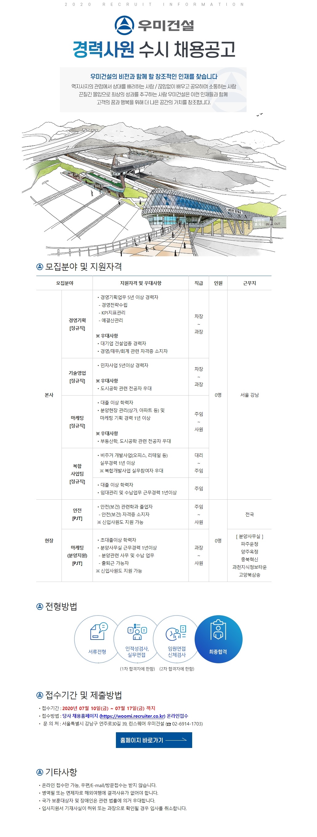 [우미건설] 부문별 경력 및 신입사원 채용 공고 ( 20.07.10 ~ )