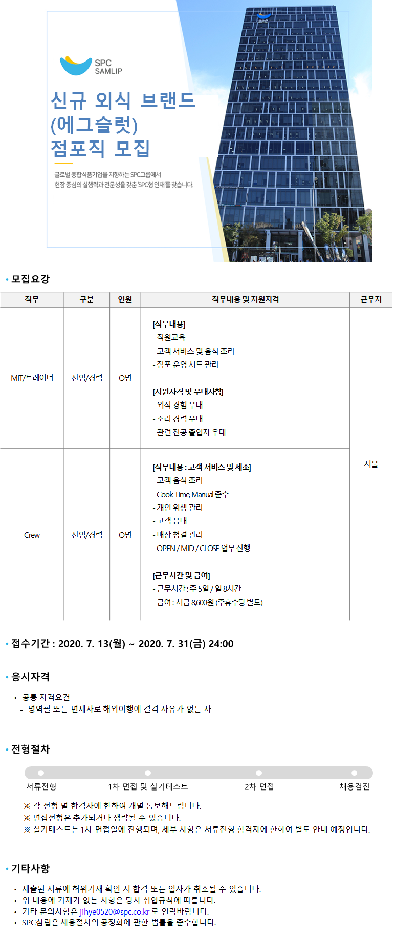 [SPC삼립] 신규 외식 브랜드(에그슬럿) 점포직 모집
