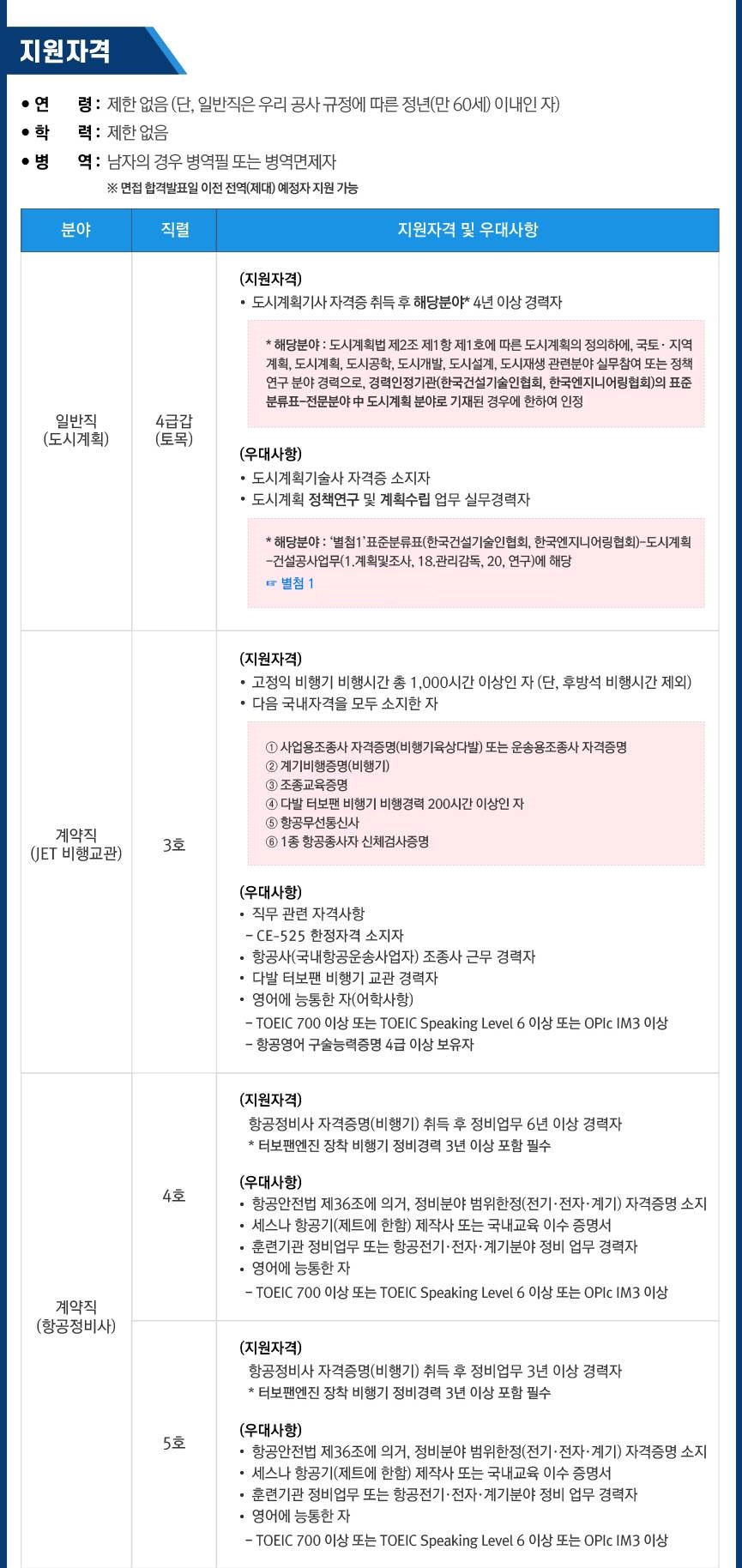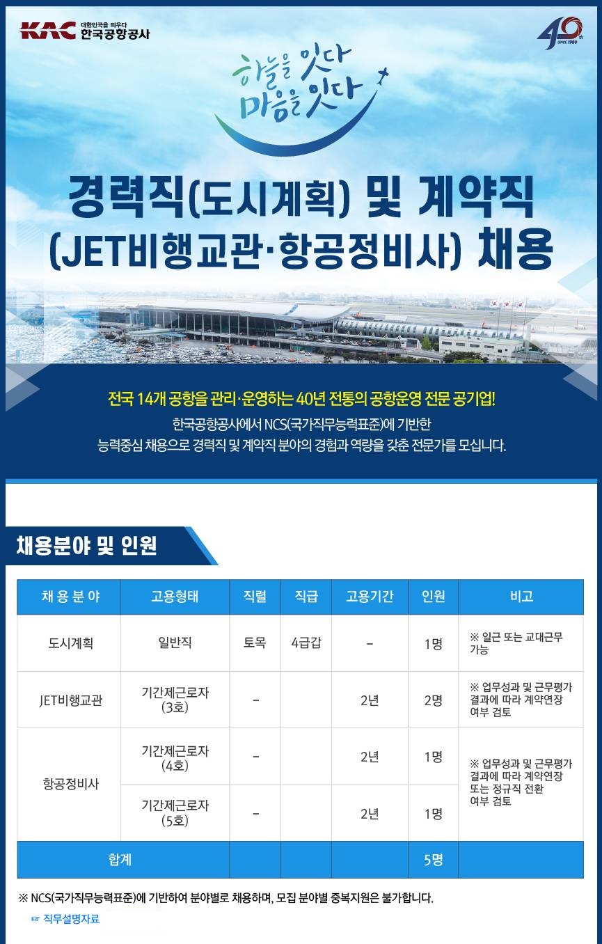 한국공항공사 경력직(도시계획) 및 계약직(JET비행교관,항공정비사) 채용