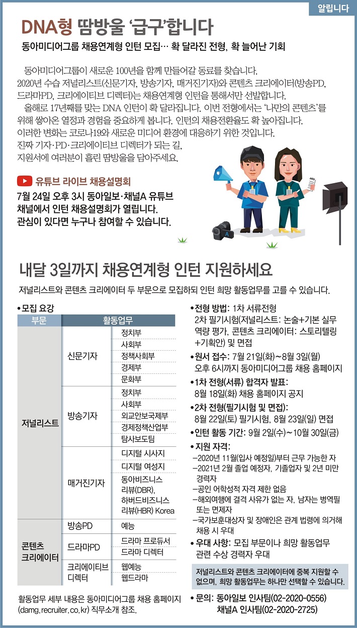동아미디어그룹 저널리스트/콘텐츠 크리에이터 인턴 채용