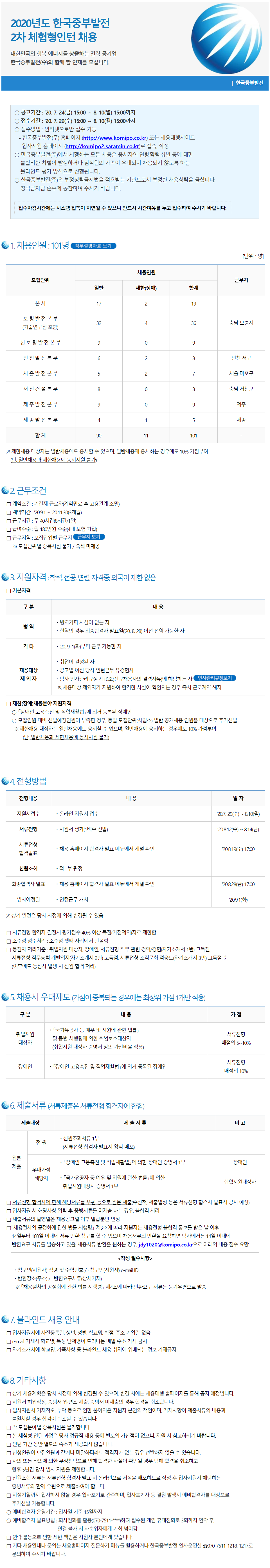 [한국중부발전] 2020년도 2차 체험형인턴 채용