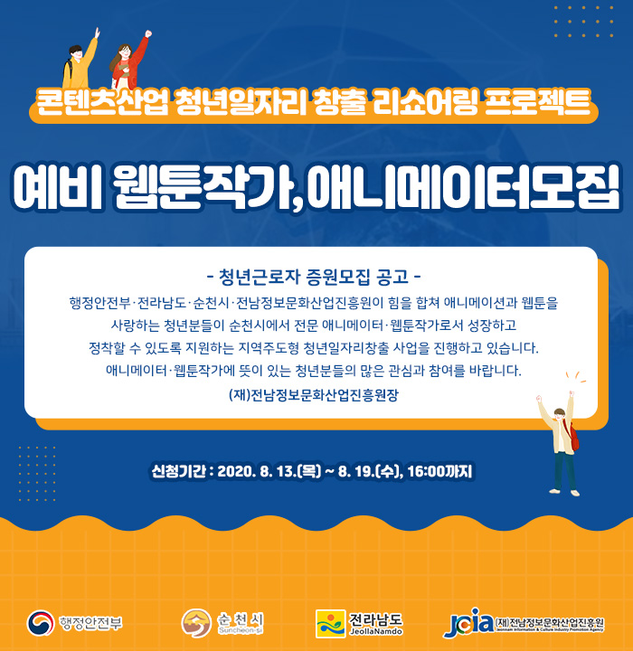 - □ 사업목적 : 순천에 지속가능한 애니메이션 및 웹툰 관련 청년일자리 창출