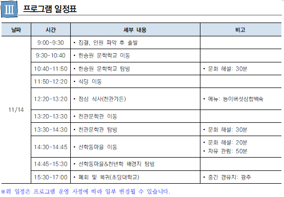 다. 탐방장소는 문화해설사를 동반하여 안내 및 설명
