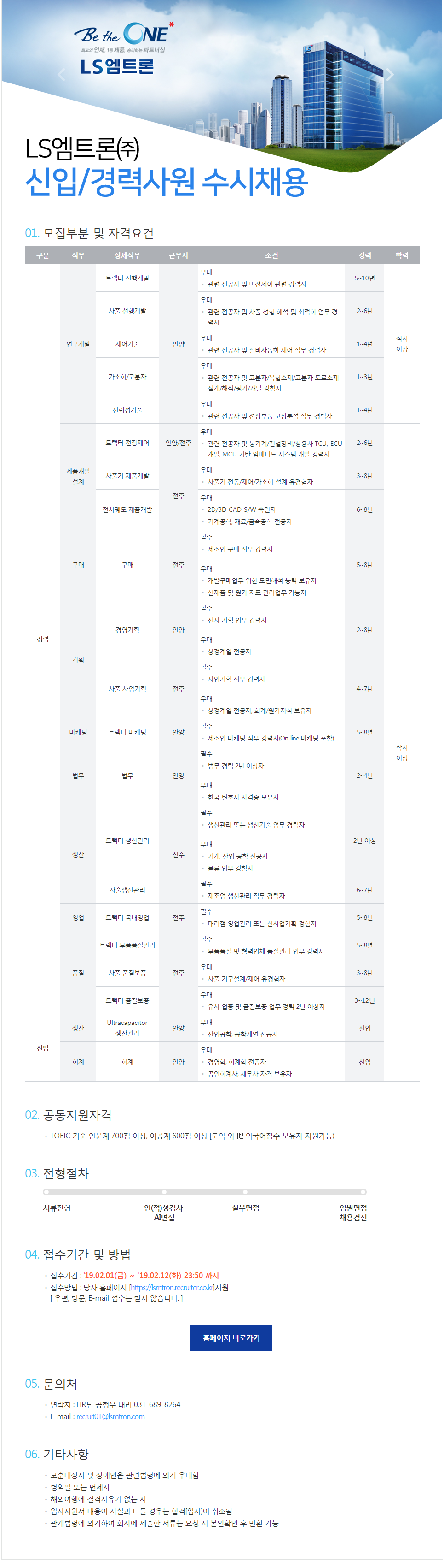 [LS엠트론] 19년 1분기 경력/신입사원 수시 채용
