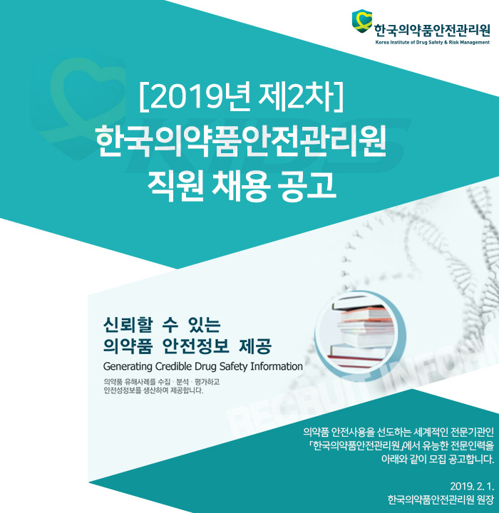 [한국의약품안전관리원] [2019년 제2차] 한국의약품안전관리원 직원 채용 공고