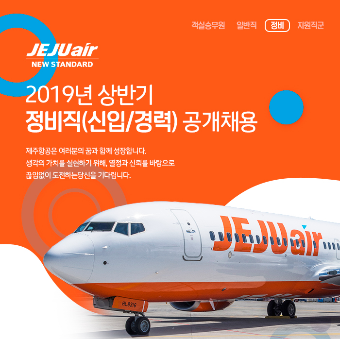 [제주항공] 2019년 상반기 정비직(신입/경력) 공개채용