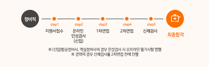 ※ 정규직전환형 인턴의 경우, 항공정비/객실정비 지원자는 인성검사 시 필기시험 병행.