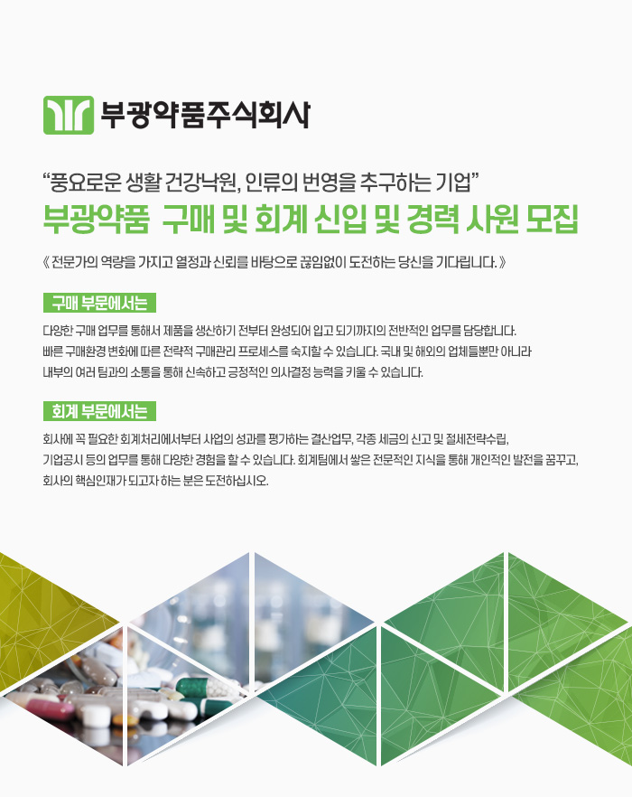 부광약품 구매 및 회계 신입 및 경력 사원 모집